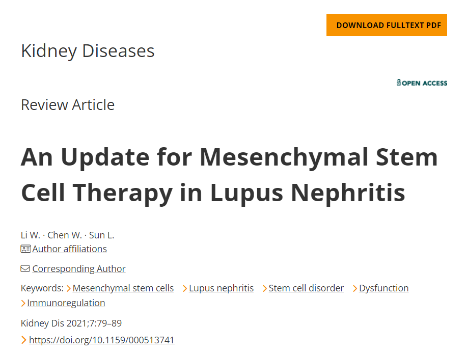 因此,仍然迫切需要新的療法。間充質干細胞 (MSCs) 對免疫反應具有有效的免疫抑制調節作用,靜脈內移植間充質干細胞可改善疾病癥狀,并已成為狼瘡腎炎的潛在有益療法。南京大學醫學院附屬鼓樓醫院風濕免疫科的目的是討論間充質干細胞在狼瘡腎炎動物模型和患者治療中的應用。