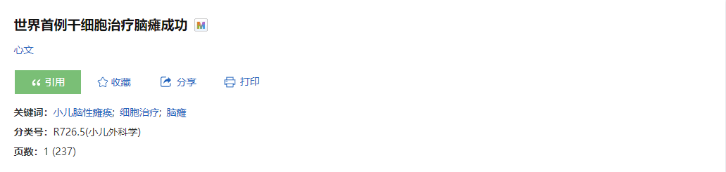 2005年,世界首例干細胞治療腦癱成功[1]。