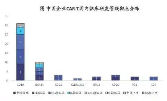 國(guó)內(nèi)已批準(zhǔn)復(fù)星凱特、藥明巨諾2款靶向于CD19的CAR-T療法、而信達(dá)生物/馴鹿醫(yī)療的BCMACAR-T療法正在申請(qǐng)上市,此外美國(guó)已批準(zhǔn)傳奇生物開(kāi)發(fā)的BCMACAR-T。