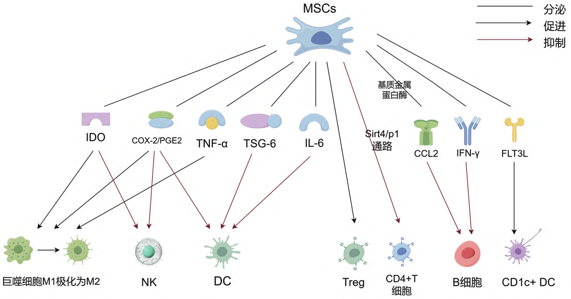 1.間充質(zhì)干細(xì)胞能夠分泌可溶性因子,調(diào)控免疫細(xì)胞
