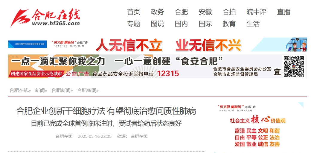 2025年5月,據(jù)合肥晚報、澎湃新聞等多家權(quán)威媒體報道,上海市第六人民醫(yī)院呼吸與危重癥醫(yī)學(xué)科任濤教授團隊,成功完成了全球首款“誘導(dǎo)多能干細胞(iPSC)衍生的基因修飾間充質(zhì)干細胞注射液”用于治療間質(zhì)性肺病患者的臨床輸注。
