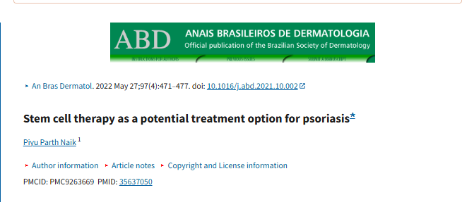 2022年5月27日,沙特德國醫(yī)院在國際期刊《ANAIS BRASILEIROS DE DERMATOLOGIA》上發(fā)布了一篇《干細(xì)胞療法是治療牛皮癬的潛在選擇》的研究結(jié)果。
