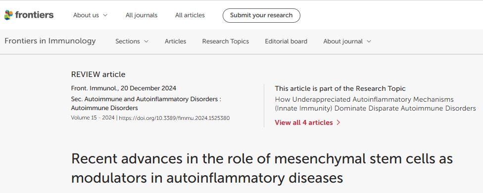 主要參考資料:[1]Chen B, Chen Z, He M, Zhang L, Yang L and Wei L (2024) Recent advances in the role of mesenchymal stem cells as modulators in autoinflammatory diseases. Front. Immunol. 15:1525380. doi: 10.3389/fimmu.2024.1525380
