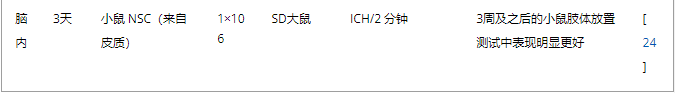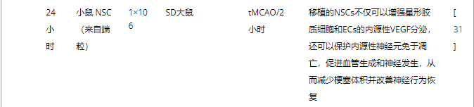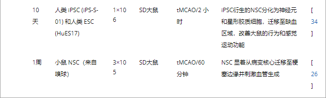 表2:腦內(nèi)(心室和紋狀體)NSC移植治療腦缺血的代表性實(shí)驗(yàn)研究。
