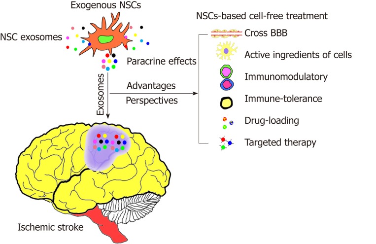 NSCs-外泌體可以克服與干細胞療法相關的許多風險和困難。外泌體含有細胞的活性成分,可自由穿過血腦屏障,介導免疫調節,無免疫耐受,可載藥,可標記靶向治療等。目前,NSCs-外泌體作為無干細胞分子可能是缺血性中風干細胞治療最有希望的治療候選者。