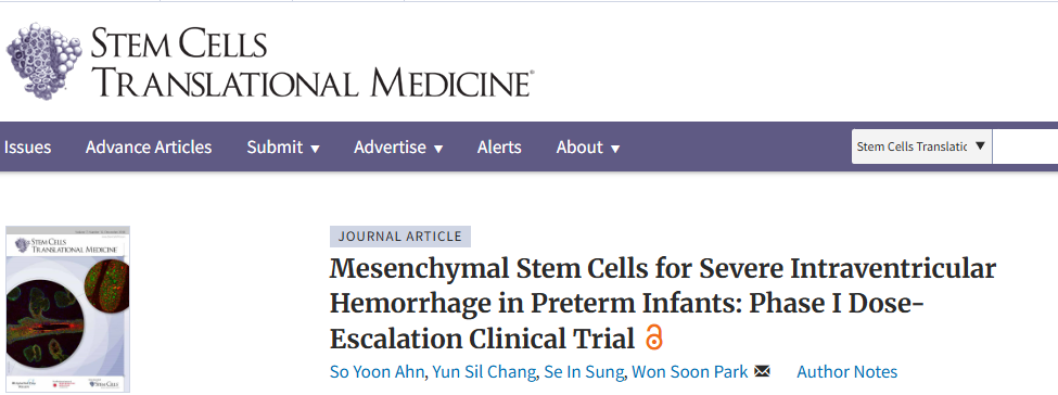 2018年,韓國(guó)的一項(xiàng)I期試驗(yàn)表明,對(duì)于早產(chǎn)兒嚴(yán)重腦室內(nèi)出血,MSC移植在某些情況下減少了室周損傷,無(wú)死亡或嚴(yán)重不良反應(yīng),顯示了其安全性和可行性。