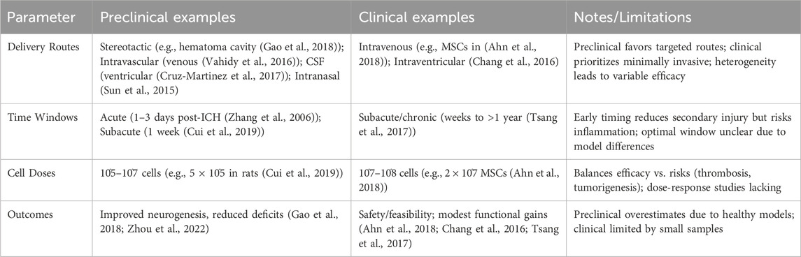 表1:神經(jīng)干細(xì)胞在治療腦出血研究中的關(guān)鍵轉(zhuǎn)化參數(shù)總結(jié)。
