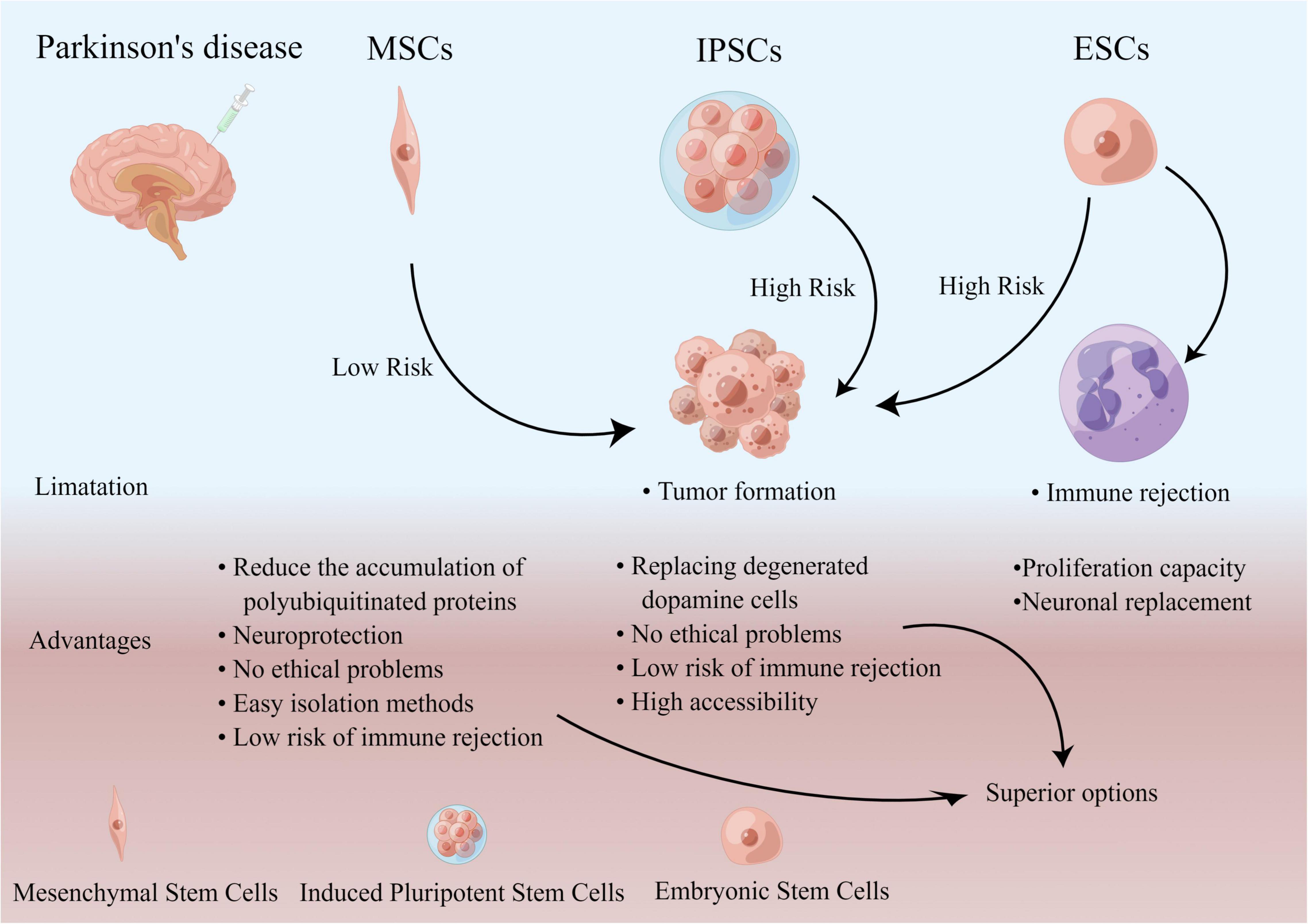 在未來,與以前使用胎兒細胞的方法相比,完成的ESC誘導的iPSC和MSC可能是更優(yōu)越的選擇(圖4)。