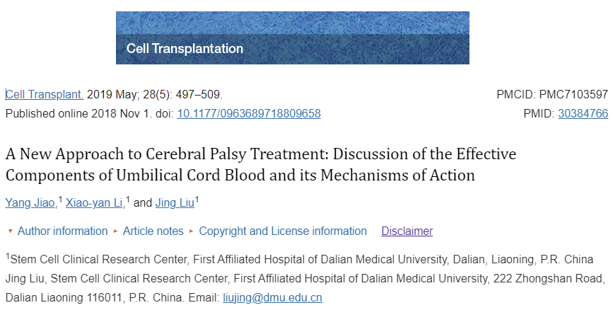 大連醫科大學第一附屬醫院干細胞臨床研究中心在一篇文章綜述中總結了臍帶血干細胞活性成分的特征及其治療腦癱的作用機制。這篇綜述重點介紹了有關臍帶血干細胞移植的當前研究結果和臨床證據,這些研究結果和臨床證據有助于提供治療建議、為治療干預決策提供信息,并有助于指導未來的研究。