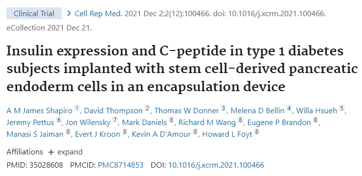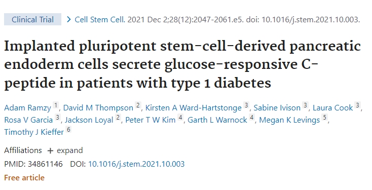 2021年,兩項(xiàng)研究報(bào)告了這些正在進(jìn)行的多中心 I/II 期臨床試驗(yàn)的初步結(jié)果,涉及兩組各15名和17名1型糖尿病患者。