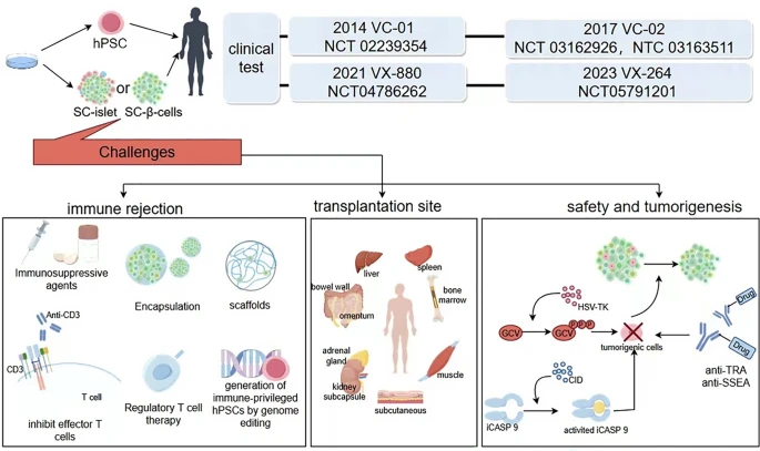 到目前為止,已經(jīng)啟動(dòng)了許多使用hPSC衍生的胰腺譜系治療糖尿病的臨床試驗(yàn)。
