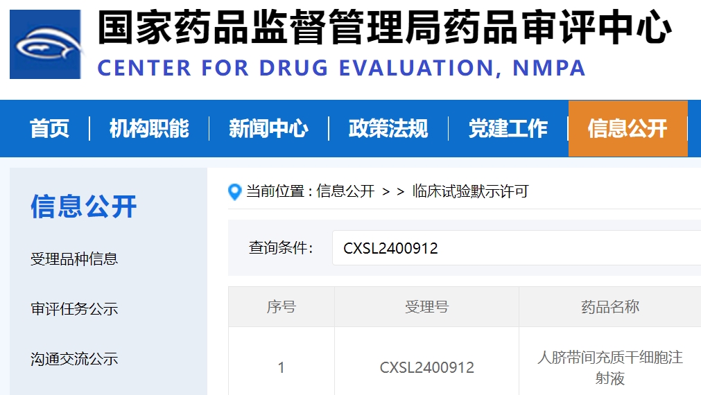近日,國家藥監局藥品審評中心(CDE)官網公示信息顯示,由廣州達博生物制品有限公司研發的E10I人臍帶間充質干細胞注射液已通過臨床試驗默示許可,將開展針對2型糖尿病治療的臨床研究(受理號:CXSL2400912)。