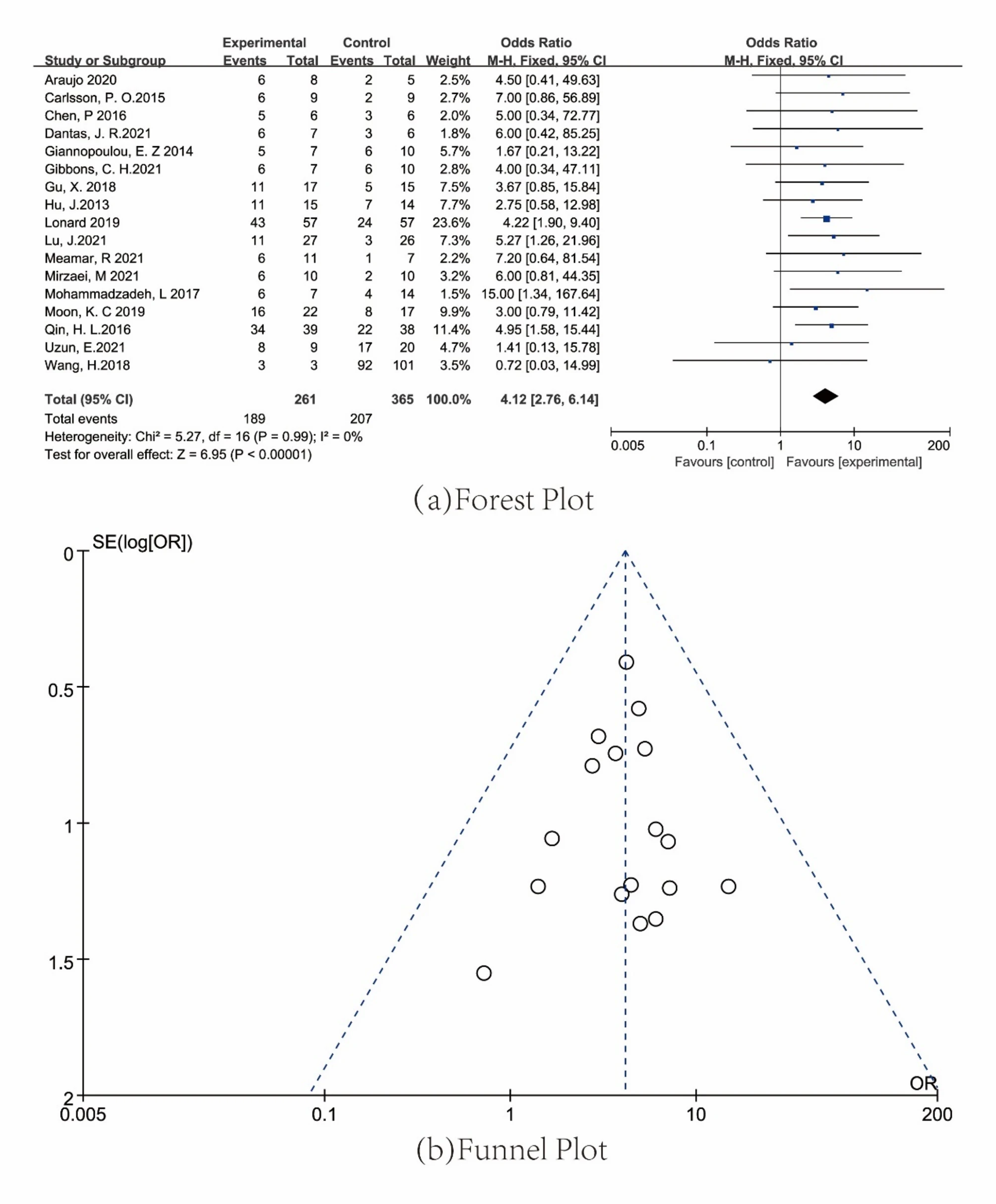 數(shù)據(jù)顯示:靜脈注射組(實(shí)驗(yàn)事件241例,對(duì)照255例)OR值為4.90,其他注射組(實(shí)驗(yàn)事件79例,對(duì)照78例)OR值為4.56,表明兩種策略療效相近,無論靜脈或肌肉/肘前靜脈注射,MSCs均能顯著改善糖尿?。▓D9)。