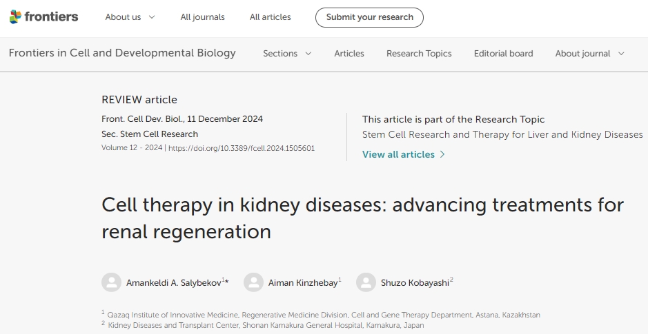 近日,期刊雜志《Frontiers in Cell and Developmental Biology》發表了一篇“Cell therapy in kidney diseases: advancing treatments for renal regeneration”的期刊綜述。該綜述全面概述了腎臟疾病細胞療法的現狀,追溯了從臨床前研究到臨床應用的進展[1]。