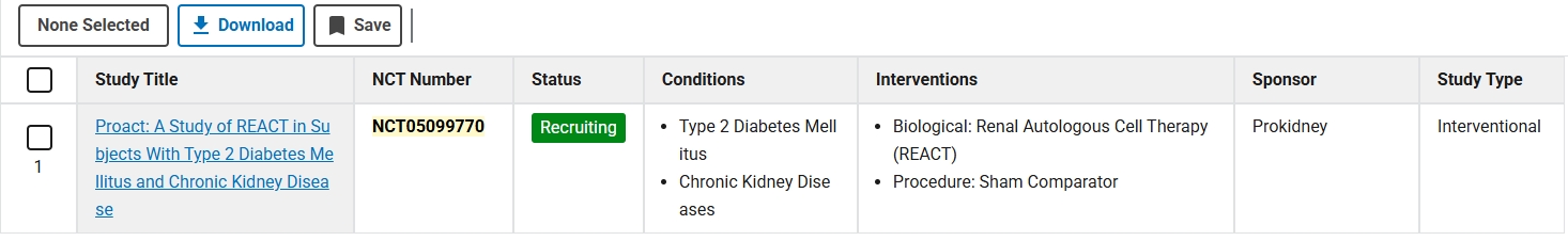 III期關(guān)鍵試驗(yàn) (PROACT 1, NCT05099770):?正在美國、亞洲和拉丁美洲約80個中心開展,評估Rilparencel對2型糖尿病引起的3b期和4期CKD患者的療效。這是支持上市申請的核心研究。