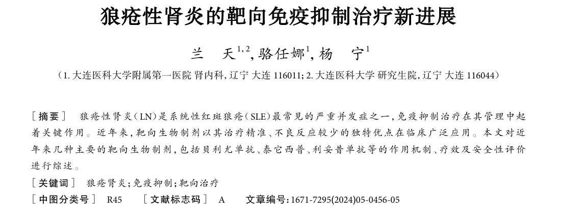 2024年,大連醫(yī)科大學(xué)附屬第一醫(yī)院發(fā)表了一項(xiàng)關(guān)于狼瘡性腎炎的靶向免疫抑制治療新進(jìn)展的研究成果。研究指出,狼瘡性腎炎(LN)治療正從傳統(tǒng)序貫治療轉(zhuǎn)向聯(lián)合治療和靶向治療。[1]