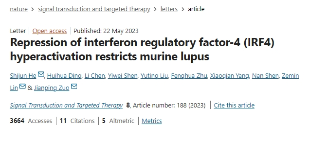 2023年,由上海中醫(yī)藥大學(xué)創(chuàng)新中藥研究院、中國科學(xué)院上海藥物研究所與上海交通大學(xué)醫(yī)學(xué)院附屬仁濟(jì)醫(yī)院組成的聯(lián)合團(tuán)隊(duì),在系統(tǒng)性紅斑狼瘡(SLE)及狼瘡性腎炎(LN)機(jī)制研究和新型青蒿素衍生物SM934治療探索中取得突破性進(jìn)展。[10]
