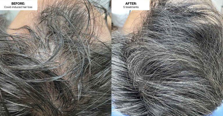 在每次治療期間,研究人員將CALECIM?干細胞血清按摩到患者的頭皮中。經過五次治療后,患者還繼續進行米諾地爾和LED光治療,頭發密度顯著改善。病人的頭皮前面長出了新的頭發,頭發也不再那么脆弱,梳理時不再容易斷裂。