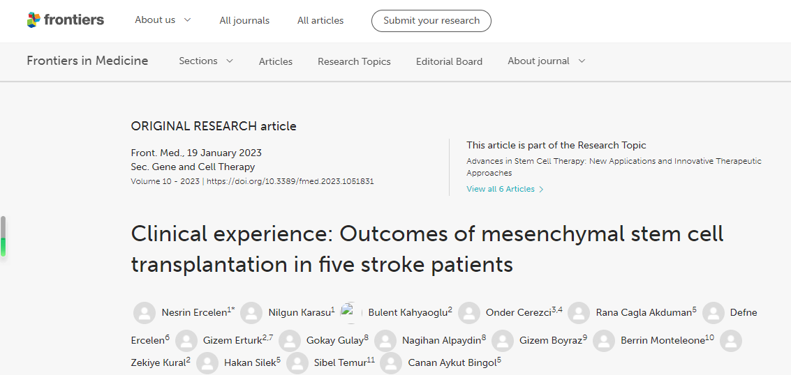在第三項原創研究中,Ercelen等人介紹了他們使用異體臍帶間充質干細胞治療中風患者的經驗。
