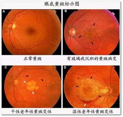 干性AMD:在干性AMD(也稱為地圖樣萎縮)中,稱為玻璃膜疣的小沉積物會(huì)在視網(wǎng)膜下積聚。隨著時(shí)間的推移,黃斑附近的RPE細(xì)胞層受損,進(jìn)而導(dǎo)致視桿細(xì)胞和視錐細(xì)胞逐漸分解。這些變化導(dǎo)致中心視力喪失。