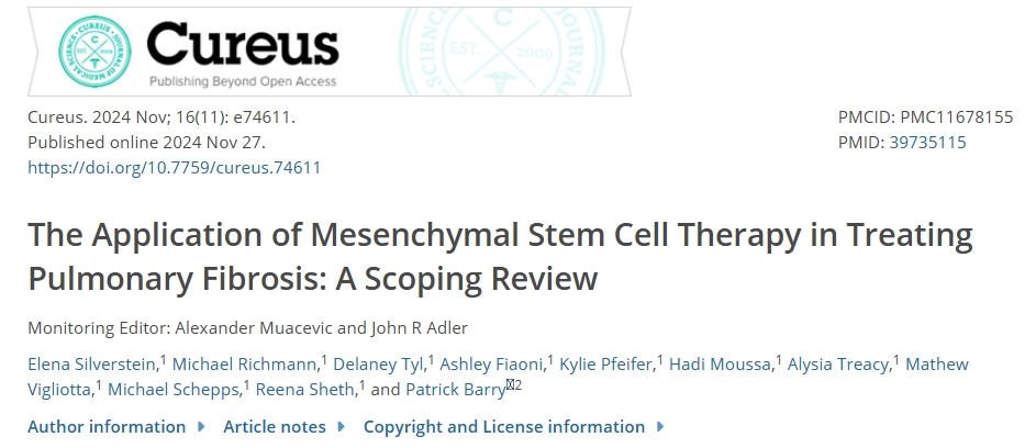 2024年,期刊雜志《Cureus》發(fā)表了一項(xiàng)“間充質(zhì)干細(xì)胞治療肺纖維化的應(yīng)用:范圍綜述。”