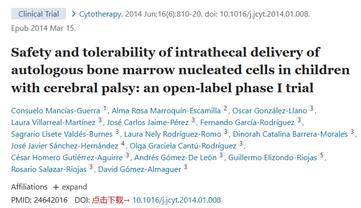因此,2014年,Mancías-Guerra等人選擇鞘內注入來自患者自身骨髓的自體MSC。18名CP患者采用了這種方法。值得注意的是,在治療后的6個月隨訪期內,患者的運動和認知功能均得到了顯著改善。