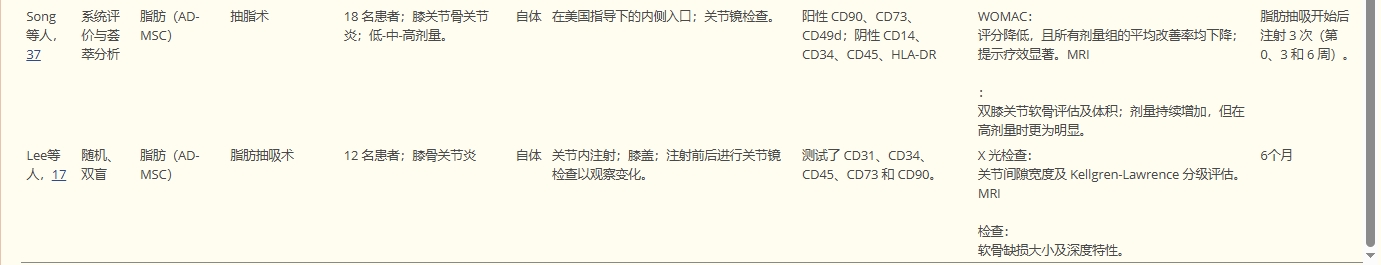 主要參考資料:[1]Yanuarso, Dandan KL, Putranto TA, et al. The Effectiveness of Mesenchymal Stem Cell (MSCs) Therapy Combined with Arthroscopy as Treatment for Knee Osteoarthritis (KOA): A Systematic Review. Orthopedic Reviews. 2025 ;17:137660. DOI: 10.52965/001c.137660. PMID: 40416589; PMCID: PMC12103298.
