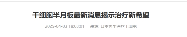 2025年4月干細胞治療半月板損傷最新臨床進展