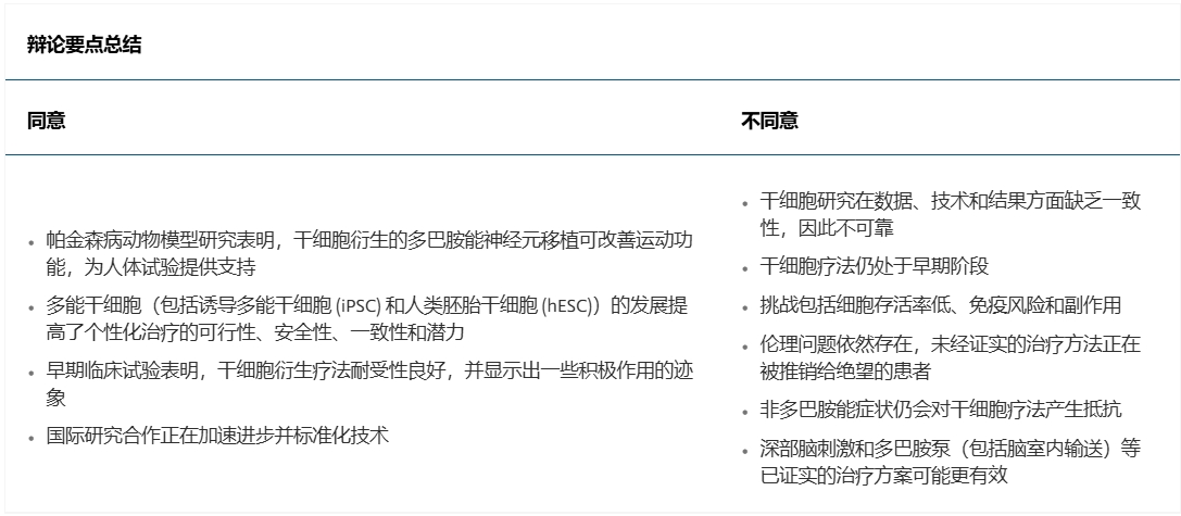 雙方觀點(diǎn)鮮明,論據(jù)充分,這場高水平的學(xué)術(shù)辯論,不僅揭示了干細(xì)胞療法在帕金森病治療道路上所面臨的曙光與挑戰(zhàn)并存,更以其深刻的思辨性,有力地重申了:盡管前路充滿荊棘,干細(xì)胞療法為帕金森病患者帶來革命性治愈希望的光芒。