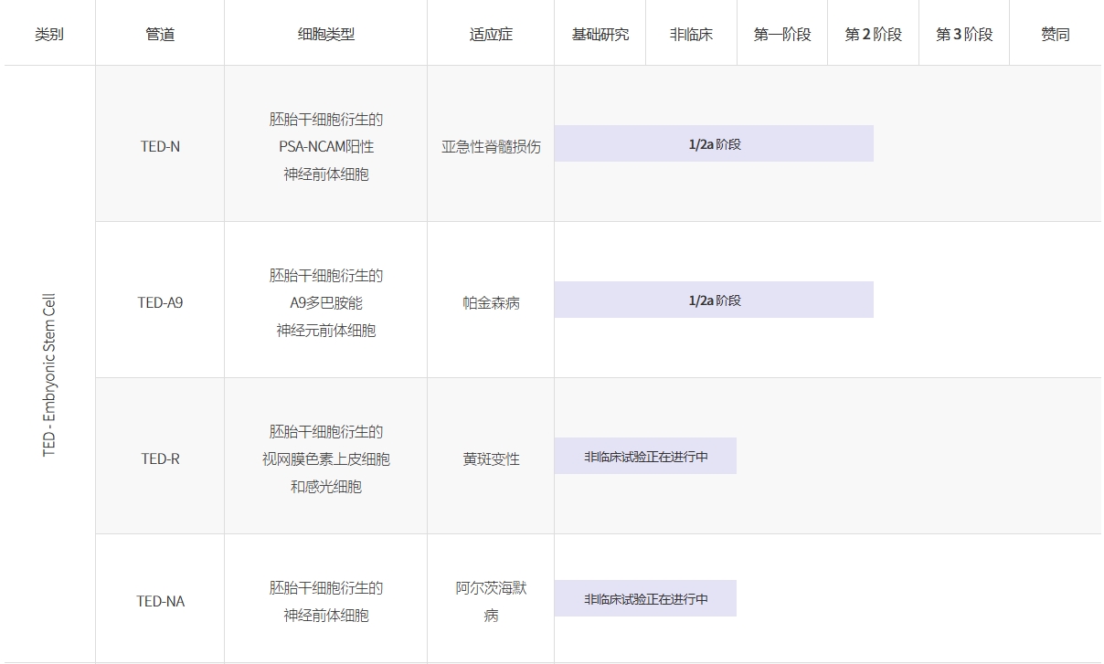 A9-DPC (TED-A9):源自hESC的腹側中腦特異性多巴胺能祖細胞,用于治療帕金森病(1/2a期)