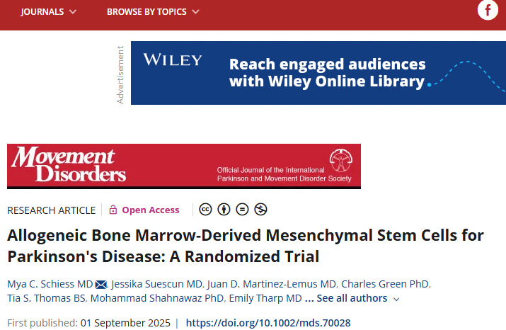 干細胞治療帕金森病取得新進展!II期臨床證實:三次輸注,安全且運動功能得到改善