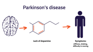 通過傳遞信息,我們的大腦特定神經元會產生一種稱為多巴胺的激素。這種多巴胺是一種化學信使,使人能夠控制身體的所有肌肉運動。當這些產生多巴胺的神經元通過蛋白質沉積物傳遞信號的功能被打斷時,人體就無法產生多巴胺,從而影響運動功能,從而導致帕金森病。