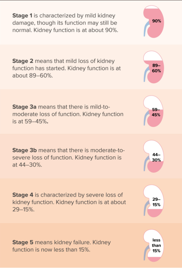 根據(jù)美國國家腎臟基金會(National Kidney Foundation)的研究,腎病可分為五個階段: