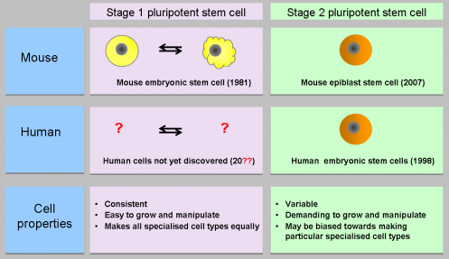 - 多能干細胞并不完全相同——小鼠胚胎干細胞和人類胚胎干細胞并不等同
