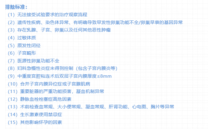 既往其他自身免疫病、嚴重器官或感染問題、腫瘤史、實驗室指標異常、已有干細胞或近期接受相關藥物/光療/激光/手術治療者;妊娠可能、藥物依賴、對制劑或麻醉藥物過敏、或者認為存在安全性。