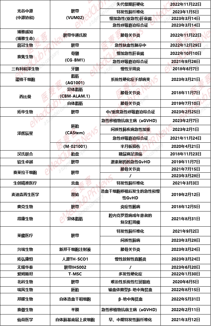 2022年2月18日,愛薩爾生物“人臍帶間充質干細胞注射液”的藥物臨床試驗申請獲受理,適應癥為缺血性腦卒中、結締組織病相關間質性肺病(CTD-IP),這是繼膝骨關節炎后斬獲的適應癥。