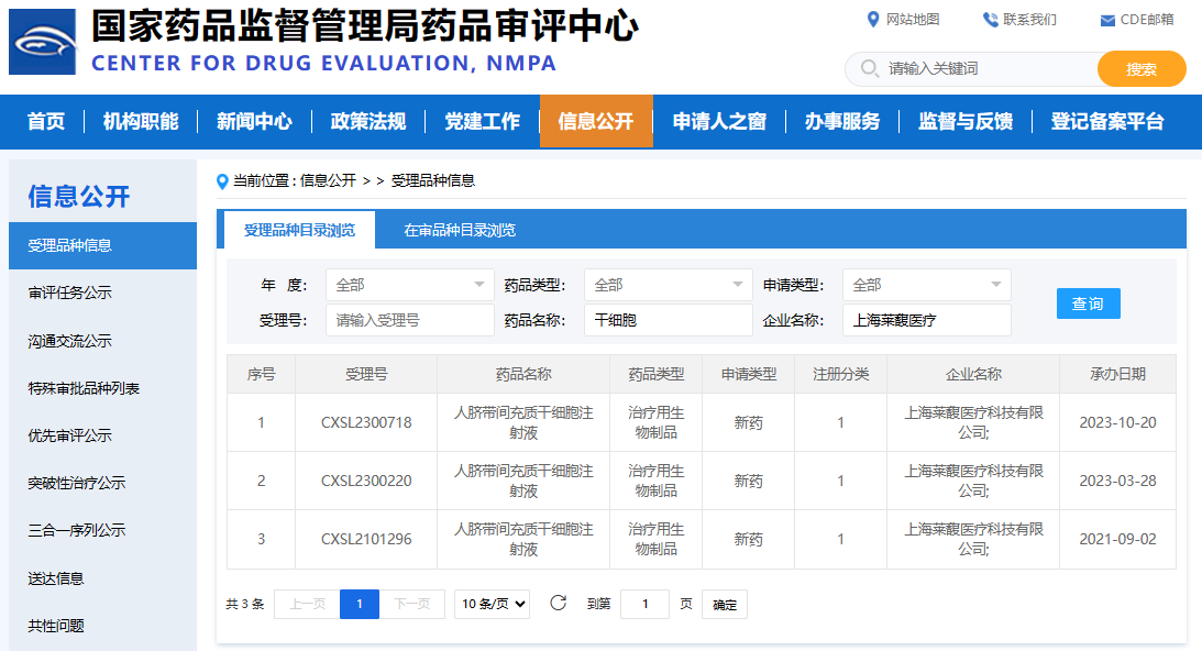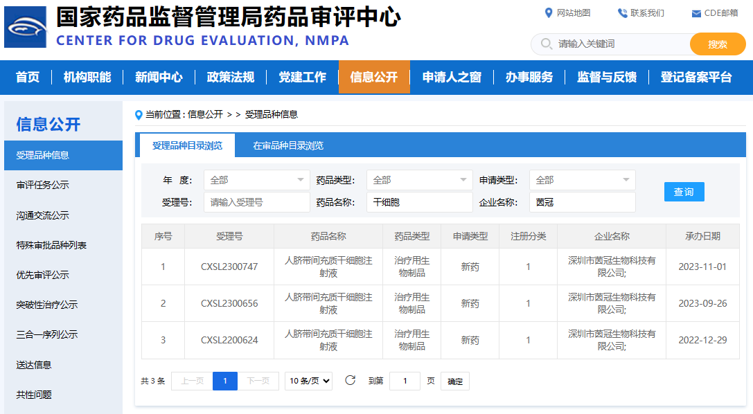 至于深圳,茵冠生物科技有限公司的表現(xiàn)更是令人矚目。短短一個(gè)多月的時(shí)間里,該公司便有兩款干細(xì)胞新藥IND相繼獲得國家藥品監(jiān)督管理局的受理,其中人臍帶間充質(zhì)干細(xì)胞注射液于2023年11月1日成功獲得受理(受理編號(hào):CXSL2300747)。這不僅展現(xiàn)了茵冠生物在干細(xì)胞新藥研發(fā)領(lǐng)域的強(qiáng)大實(shí)力,也充分體現(xiàn)了其快速反應(yīng)和創(chuàng)新能力。