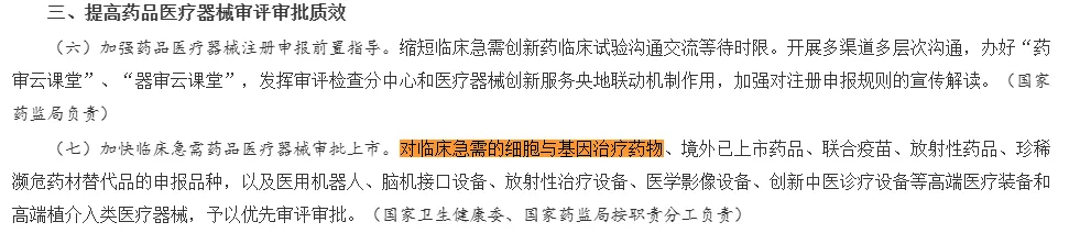 1. 審評審批提速:創(chuàng)新成果更快惠及患者《意見》明確指出,對臨床急需的基因與細胞治療藥物實行優(yōu)先審評審批,并大幅縮短審批時間。例如,臨床試驗審批時間從60個工作日縮短至30個工作日。這一舉措打通了從實驗室到市場的“最后一公里”,讓科研成果得以及時轉化,更快服務于患者。