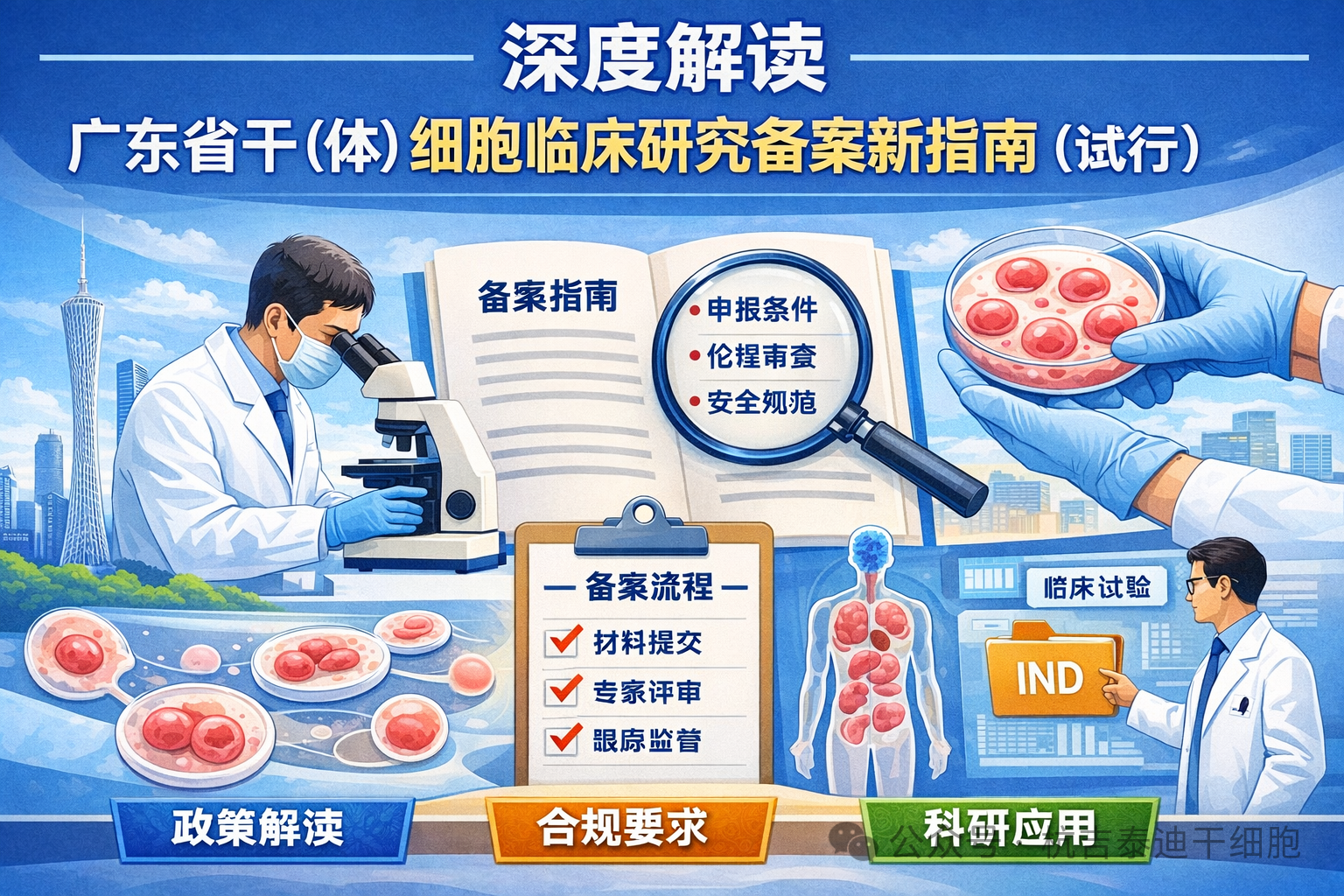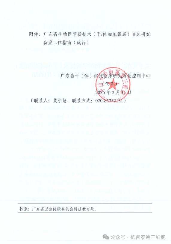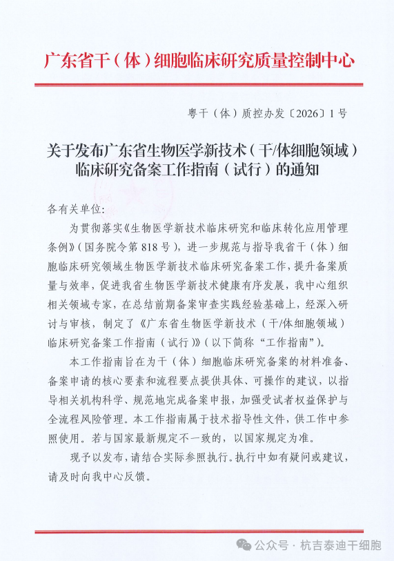 近日,廣東省發(fā)布的《干(體)細(xì)胞臨床研究備案新指南(試行)》,正是對(duì)這一需求的及時(shí)回應(yīng)。該指南以國(guó)務(wù)院新出臺(tái)的《生物醫(yī)學(xué)新技術(shù)臨床研究和臨床轉(zhuǎn)化應(yīng)用管理?xiàng)l例》(國(guó)務(wù)院令第818號(hào))為核心依據(jù),結(jié)合廣東省在干細(xì)胞臨床研究備案審查中的實(shí)務(wù)經(jīng)驗(yàn),旨在為相關(guān)機(jī)構(gòu)和研究者提供一份清晰、可操作的技術(shù)指導(dǎo)手冊(cè)。